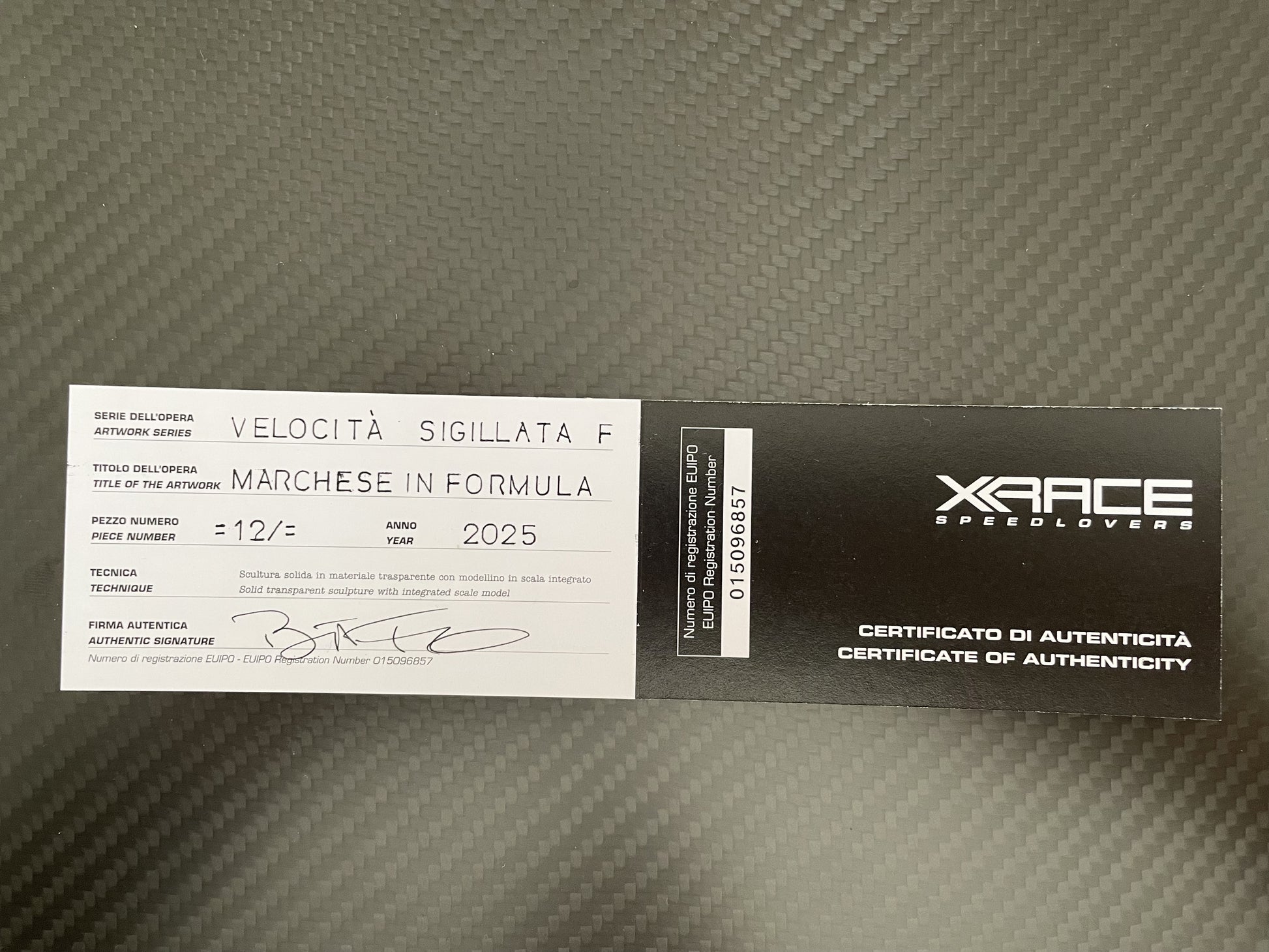 Ogni esemplare è un pezzo unico, realizzato artigianalmente e racchiuso in un cofanetto premium che ne valorizza l’esclusività. L’opera è accompagnata da un certificato di autenticità firmato, che ne attesta l’originalità, il numero di produzione e l’identità artistica.