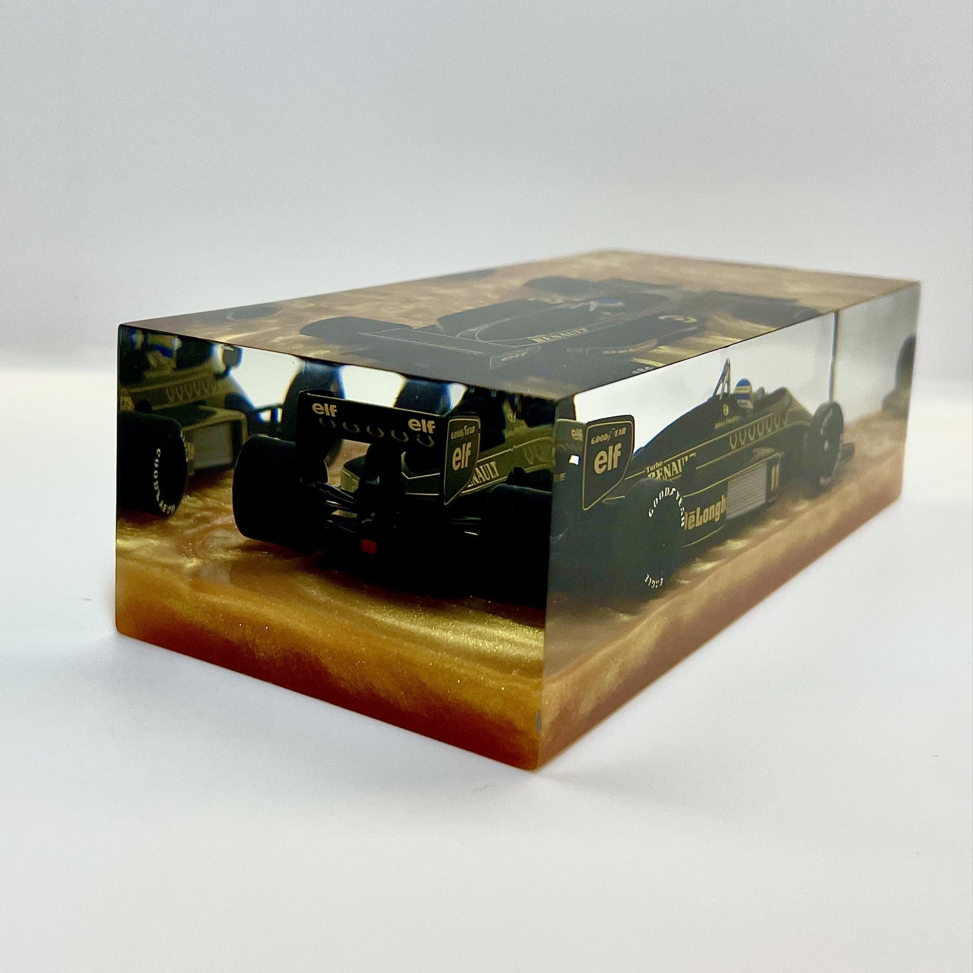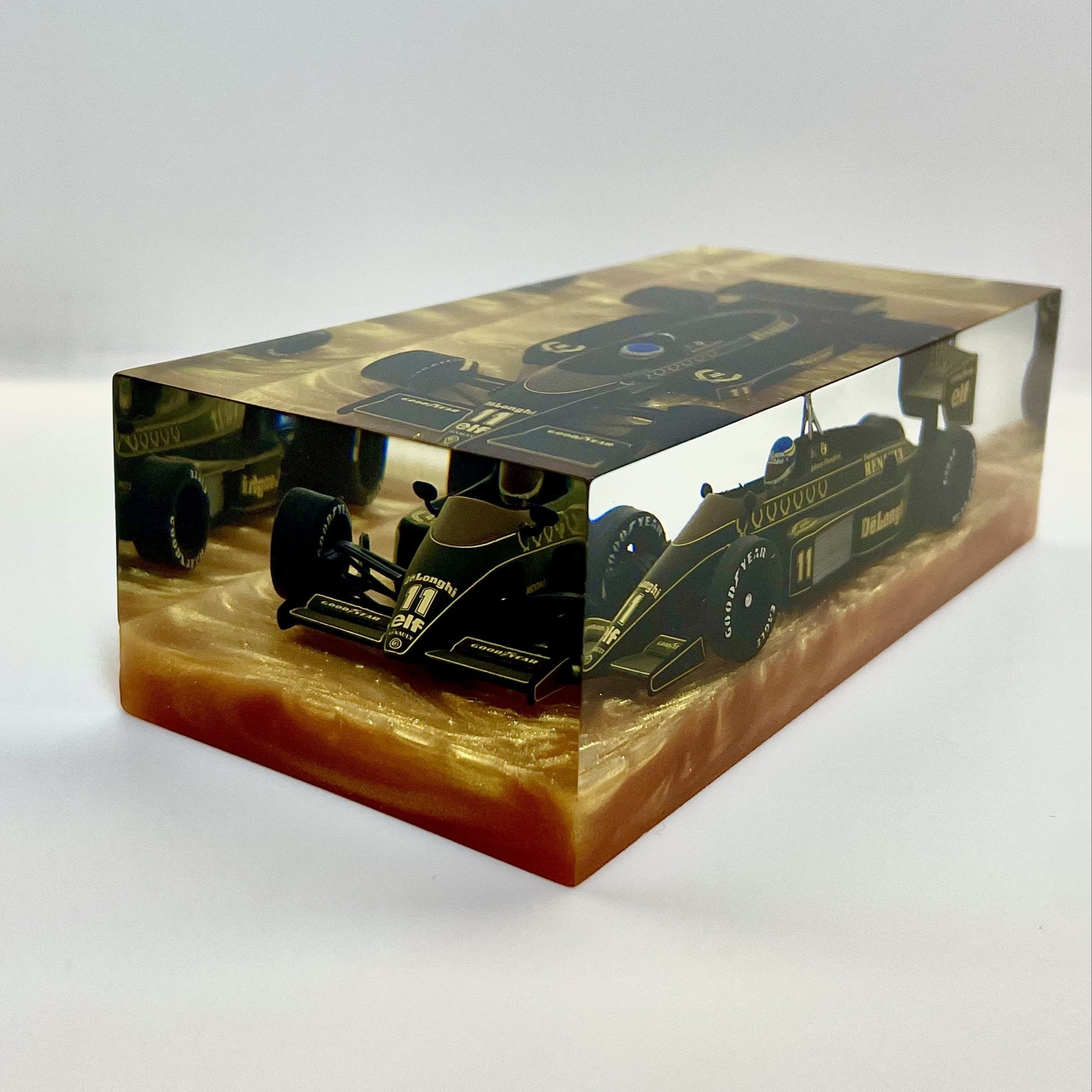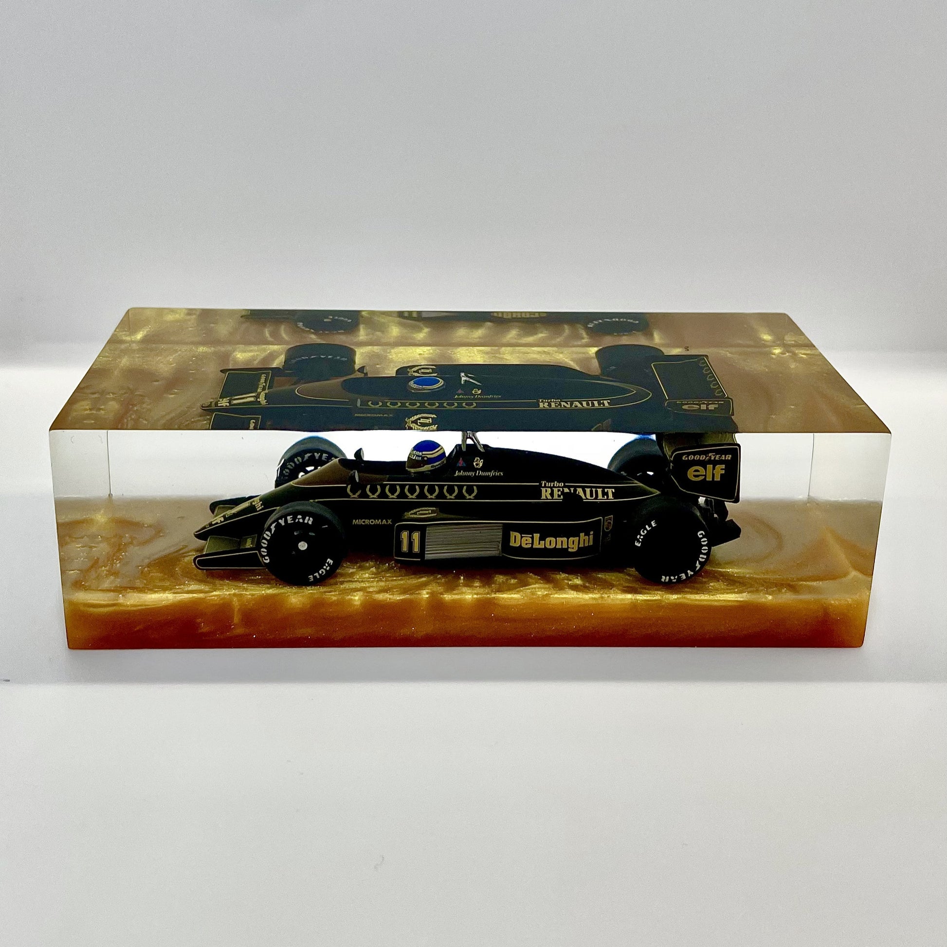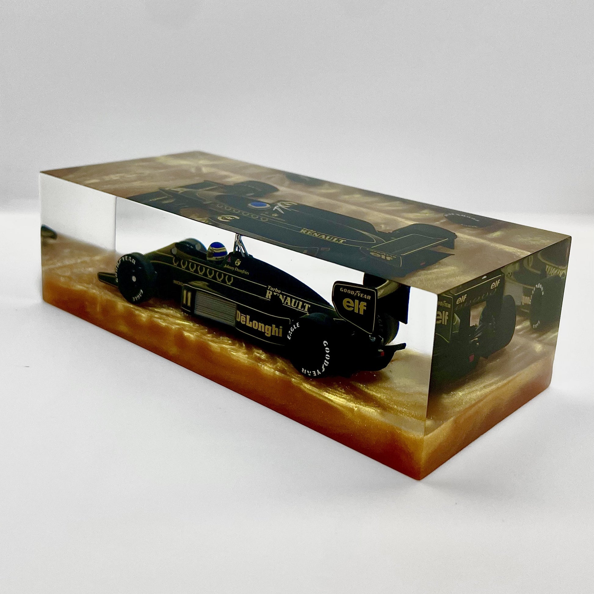 Driven by Johnny Dumfries in the legendary Hockenheim Grand Prix, this extreme single-seater – powered by the Renault EF15B engine – is now sealed in a crystal-clear block with a clean, minimalist design.