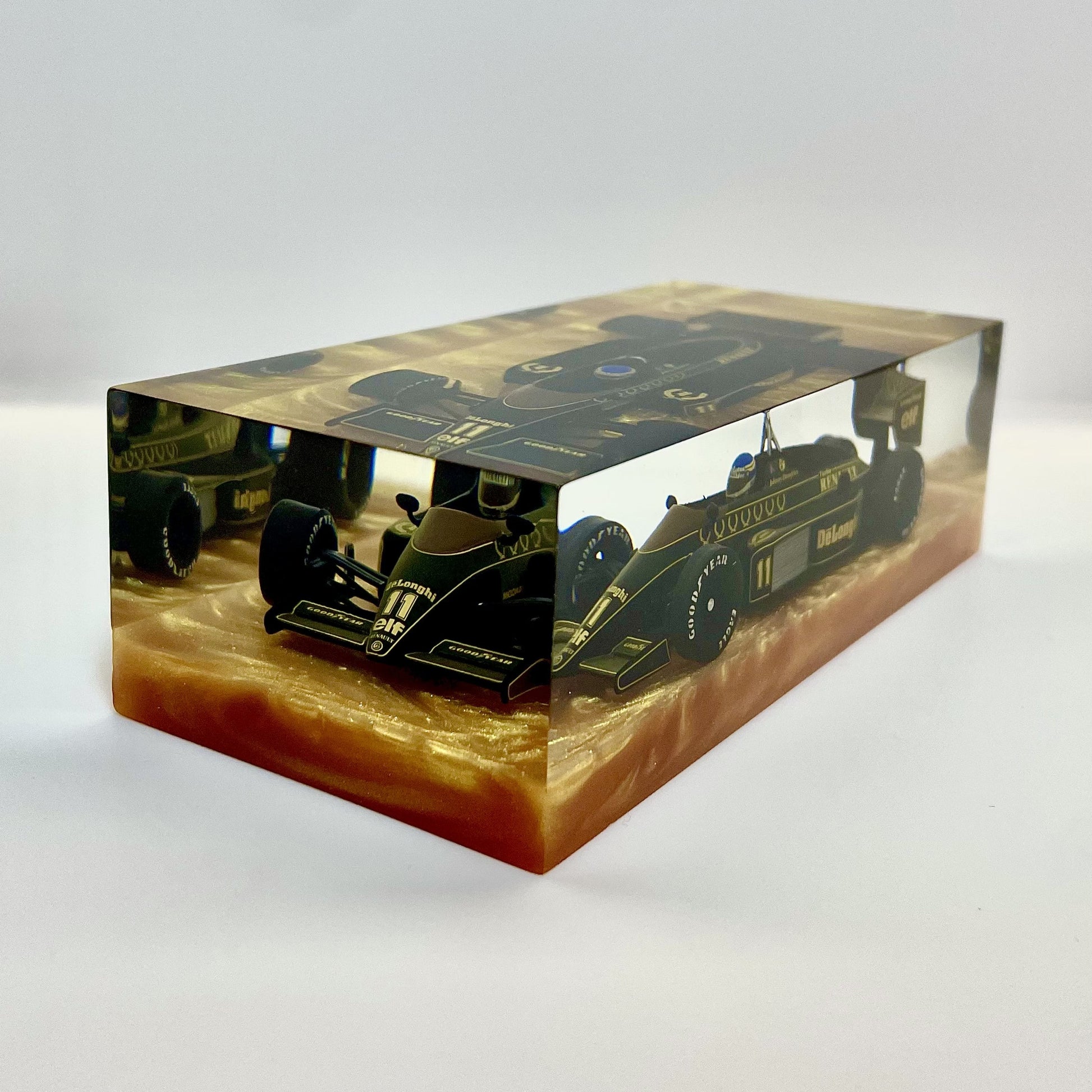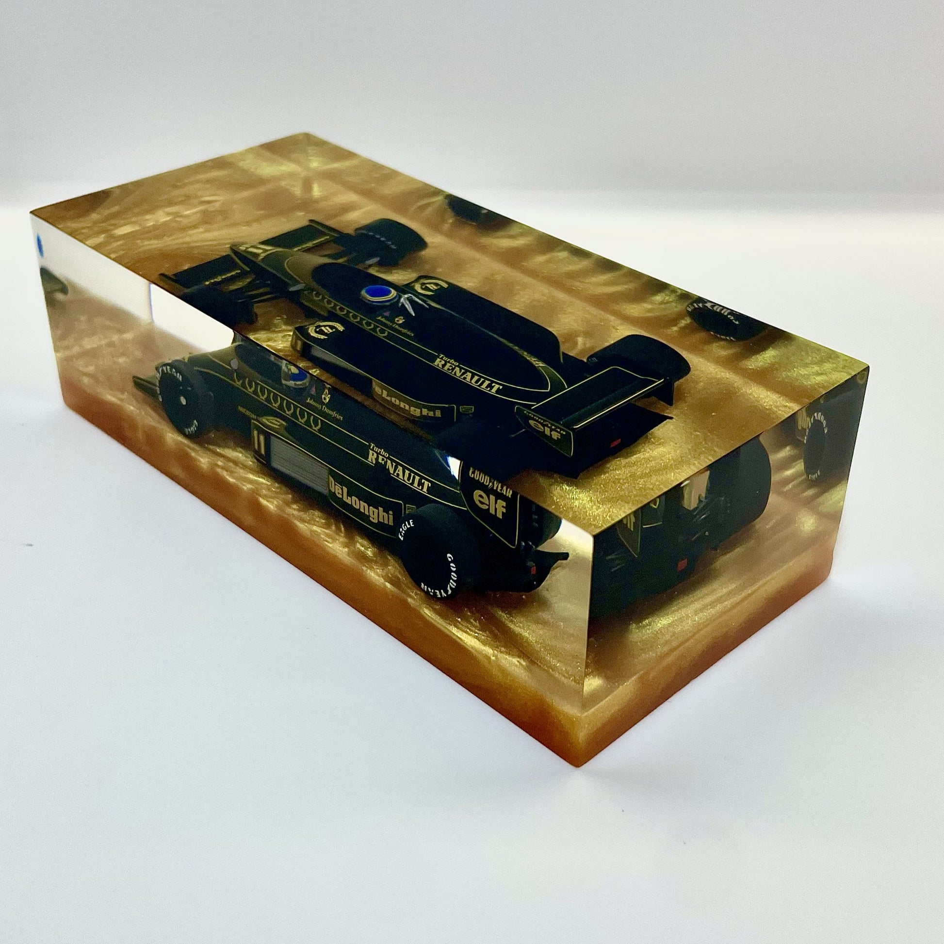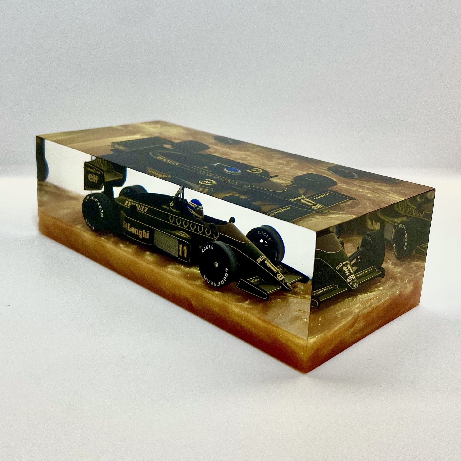 Driven by Johnny Dumfries in the legendary Hockenheim Grand Prix, this extreme single-seater – powered by the Renault EF15B engine – is now sealed in a crystal-clear block with a clean, minimalist design.