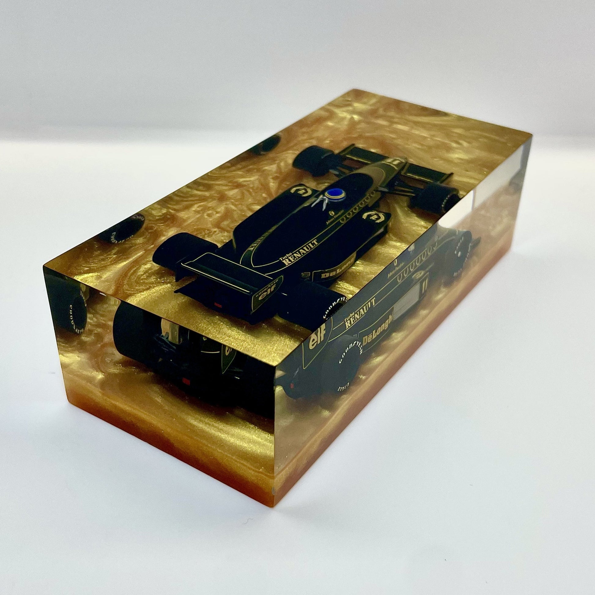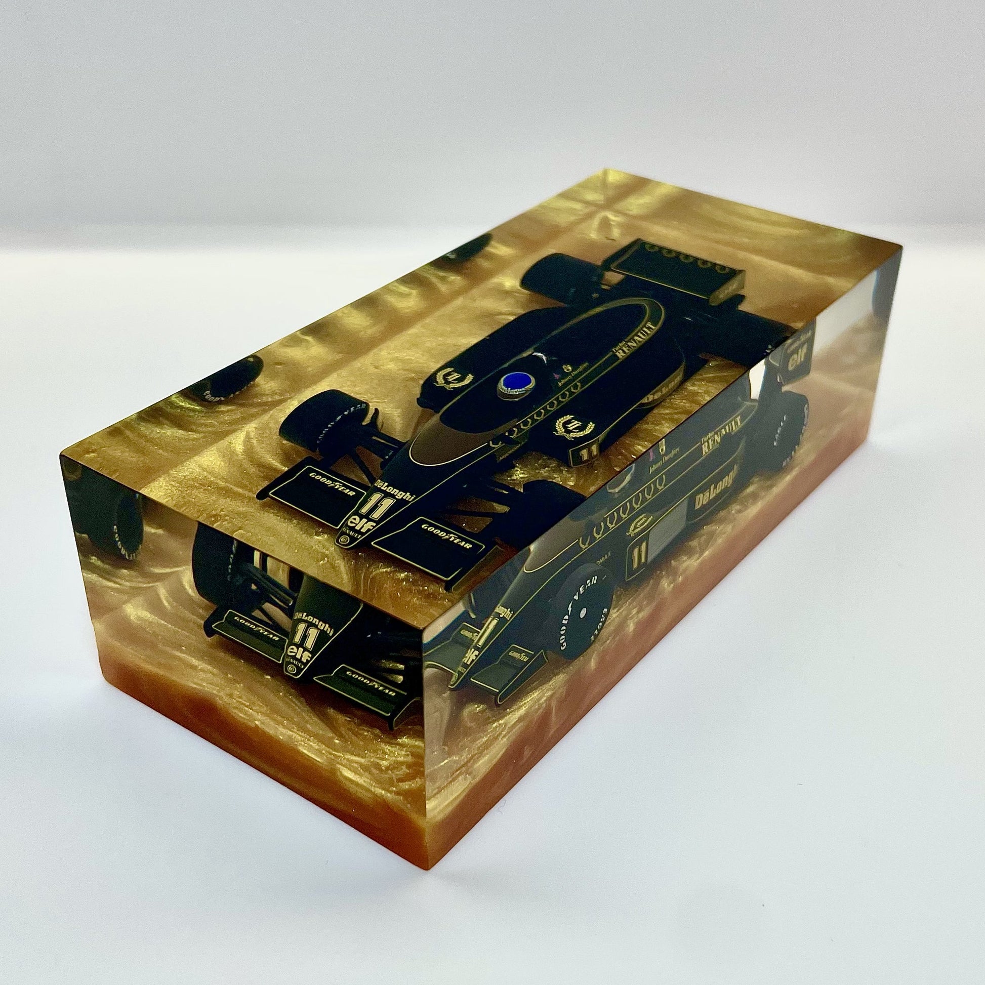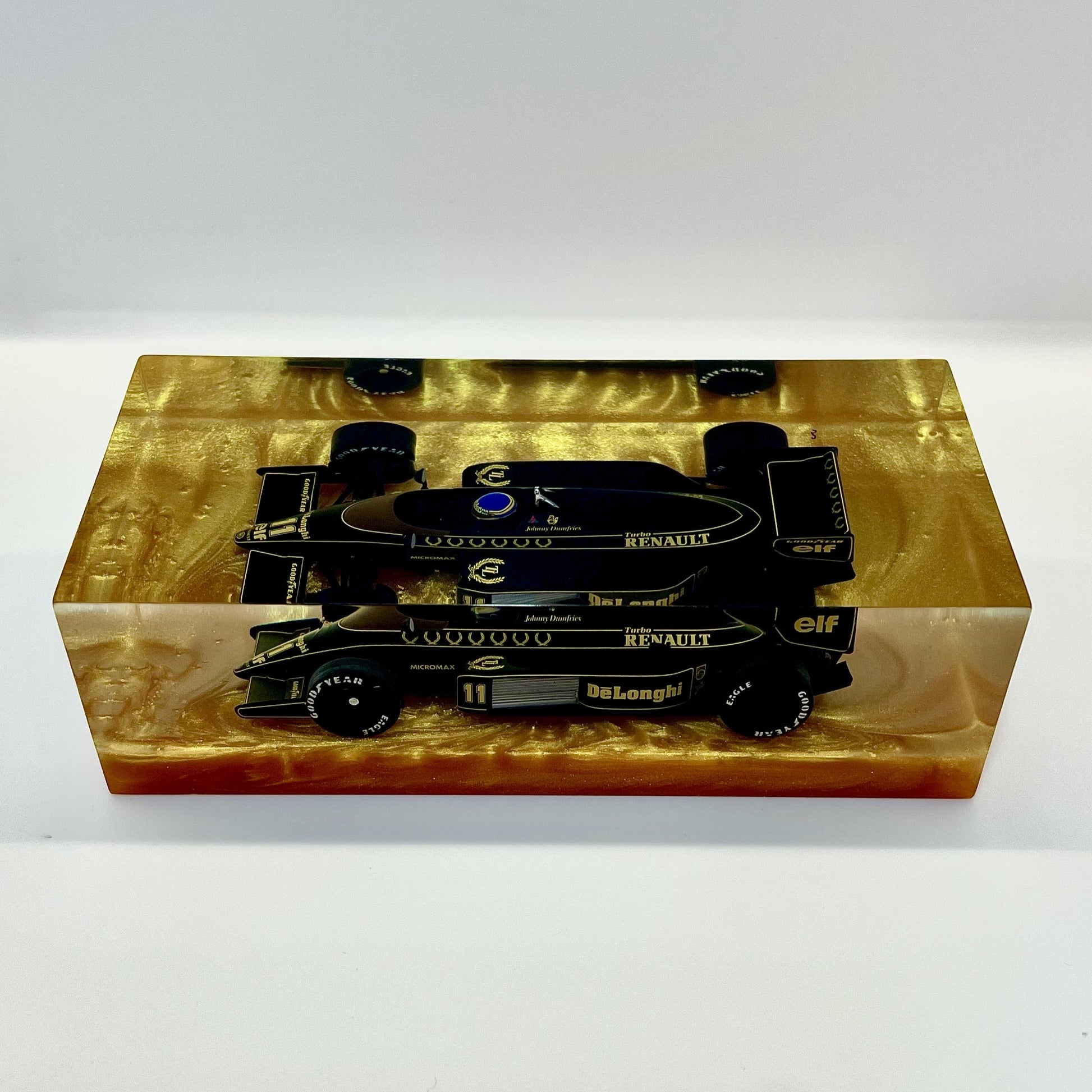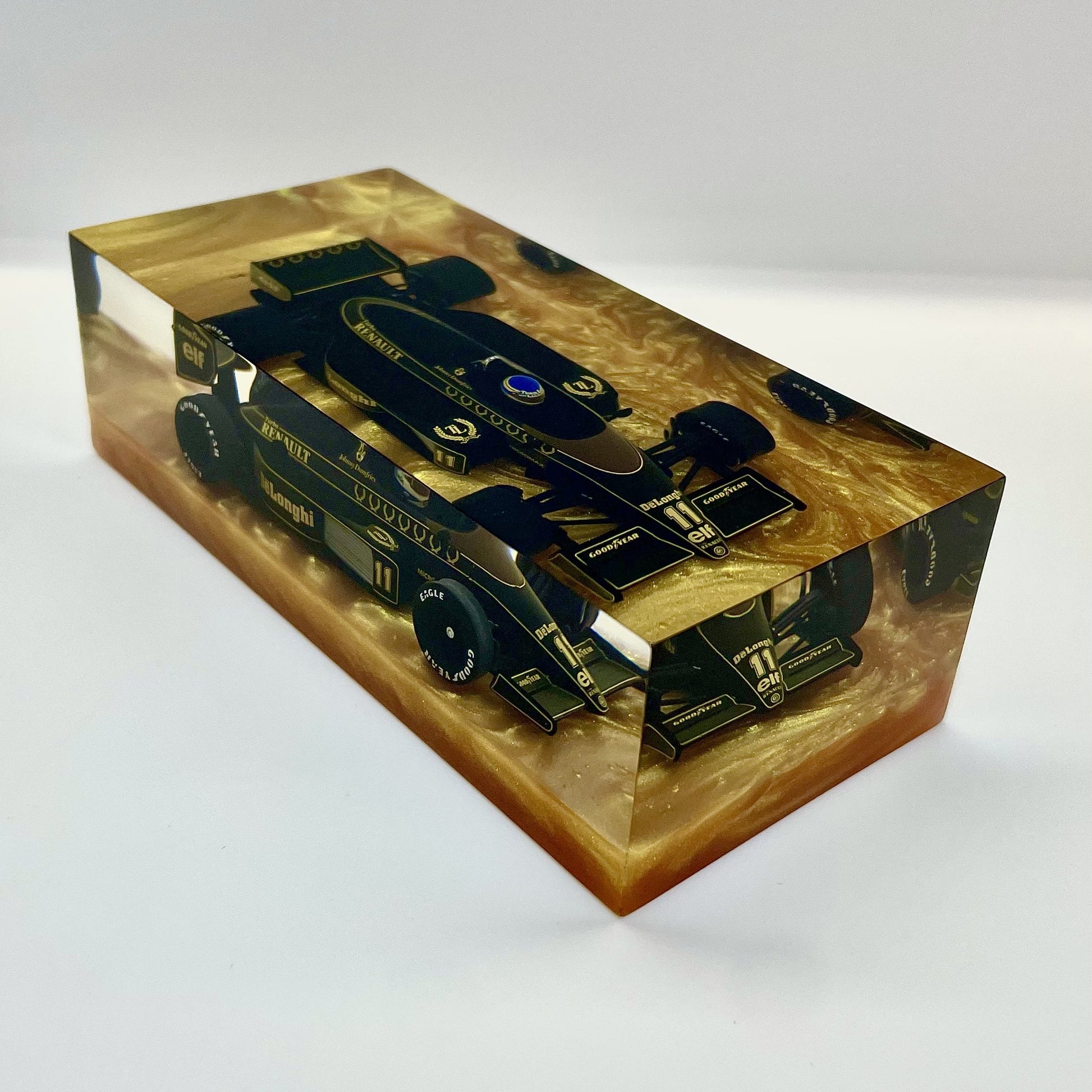 Driven by Johnny Dumfries in the legendary Hockenheim Grand Prix, this extreme single-seater – powered by the Renault EF15B engine – is now sealed in a crystal-clear block with a clean, minimalist design.