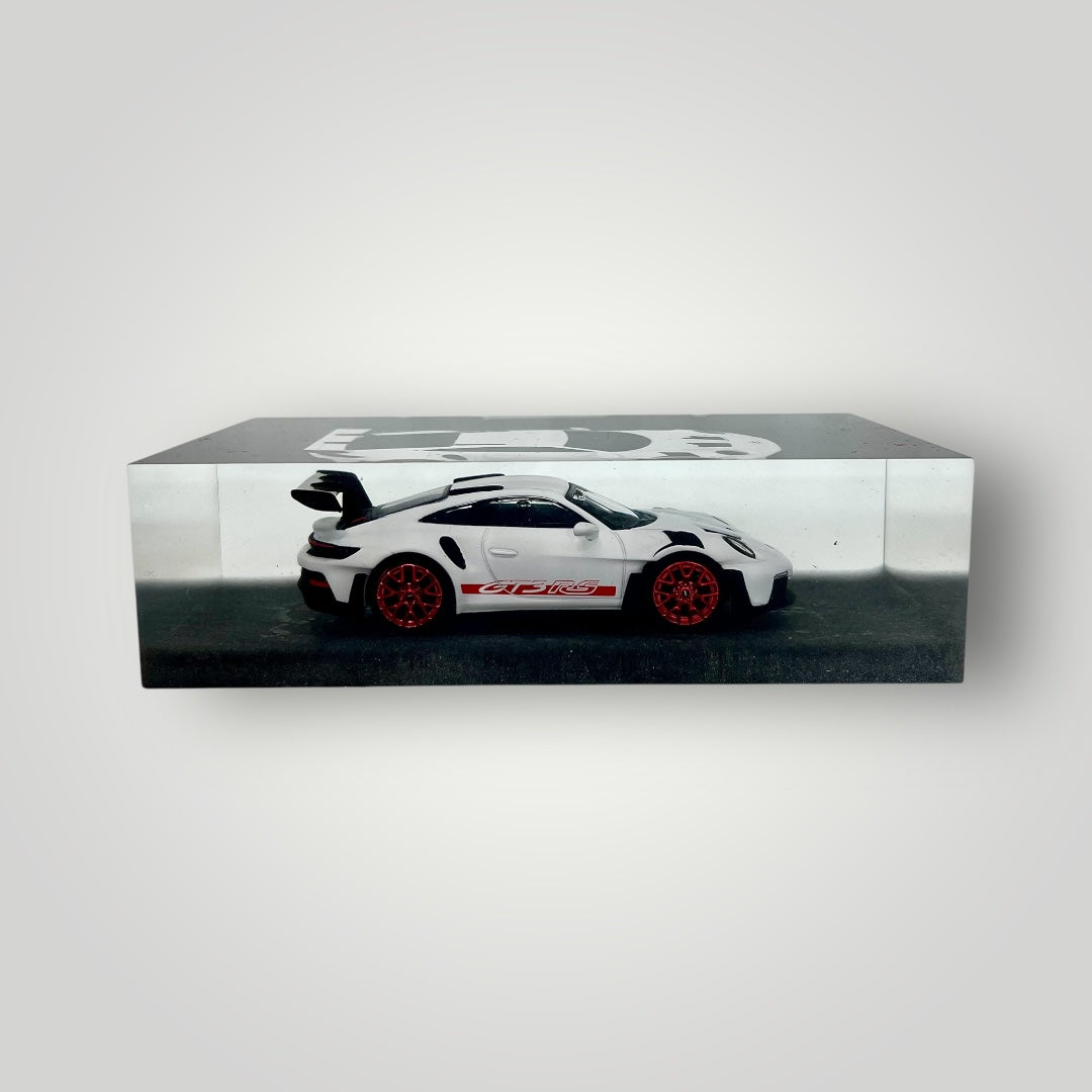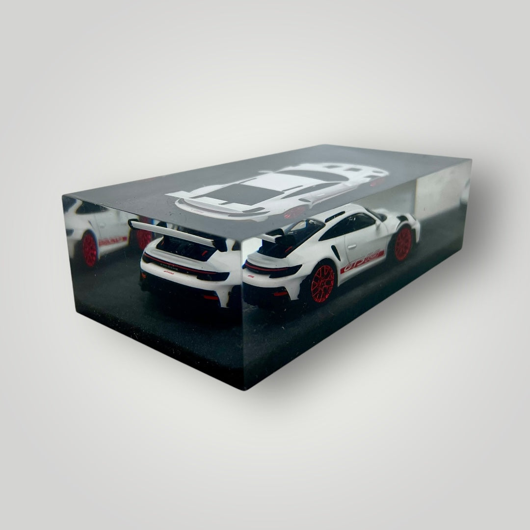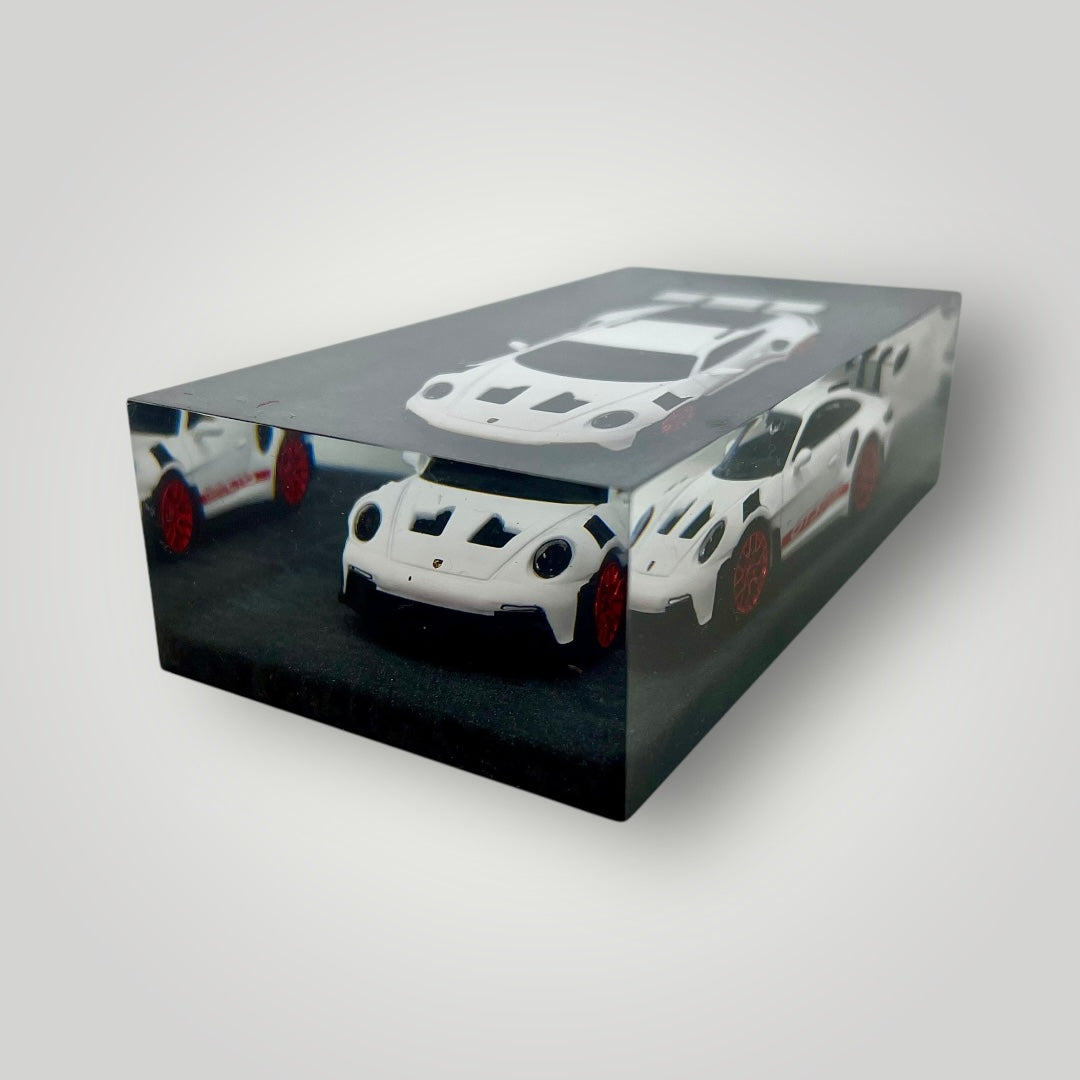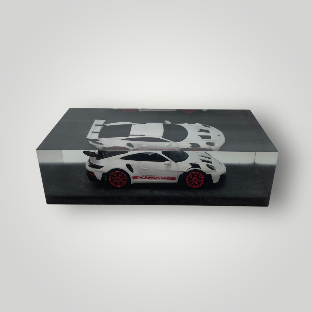 In this exclusive creation from the Sealed Speed series by XRACE Speedlovers, the legendary Porsche 911 GT3 RS (992) is transformed into a timeless icon, sealed within a solid, transparent resin block with a clean and contemporary design. A tribute to the raw power, precision, and brutal elegance of Stuttgart’s ultimate driving machine.