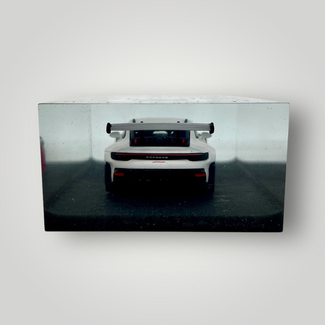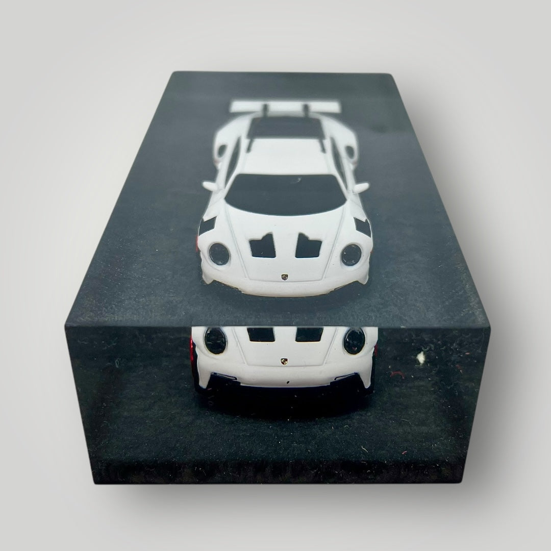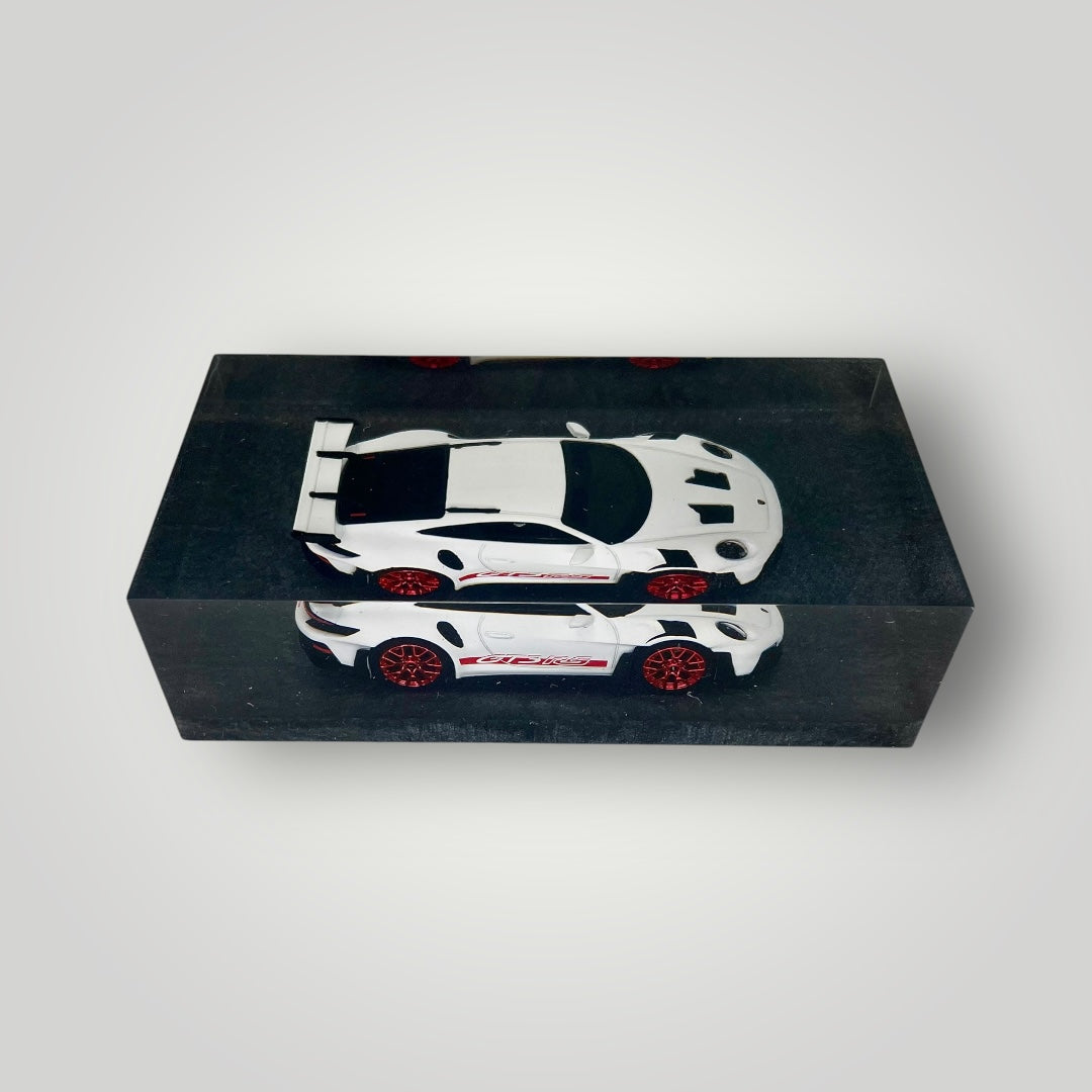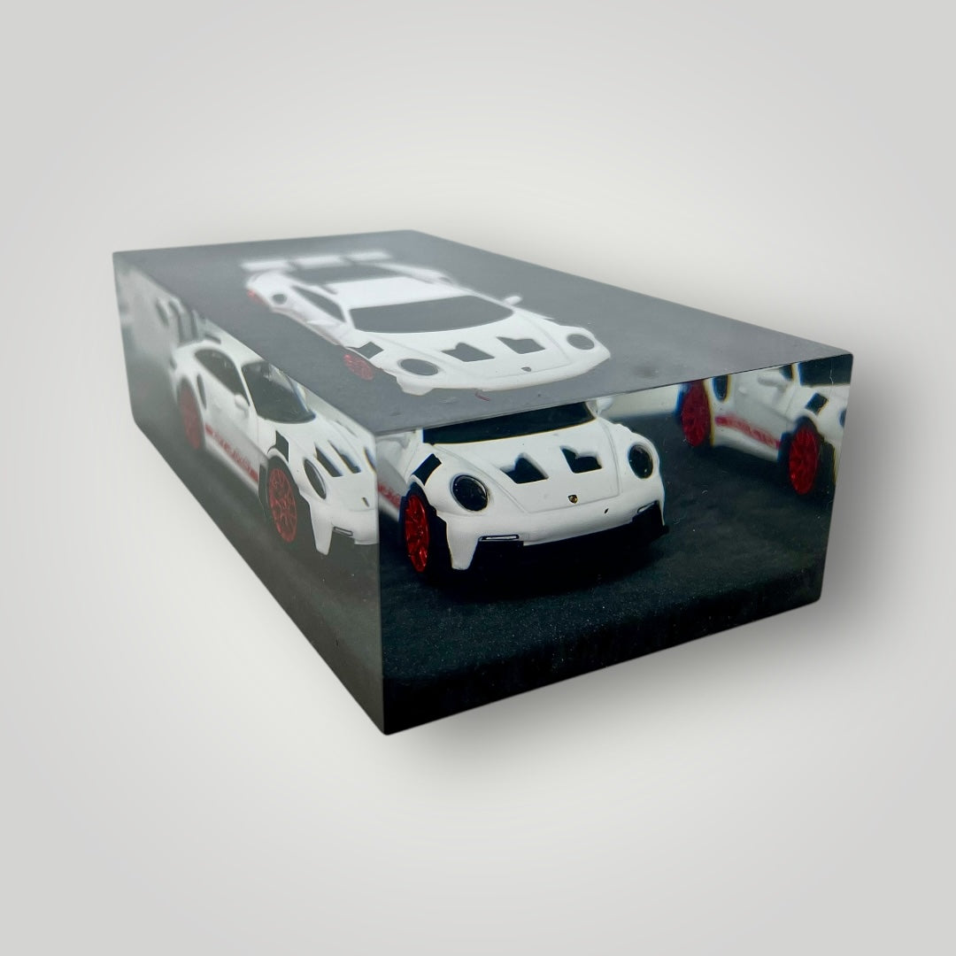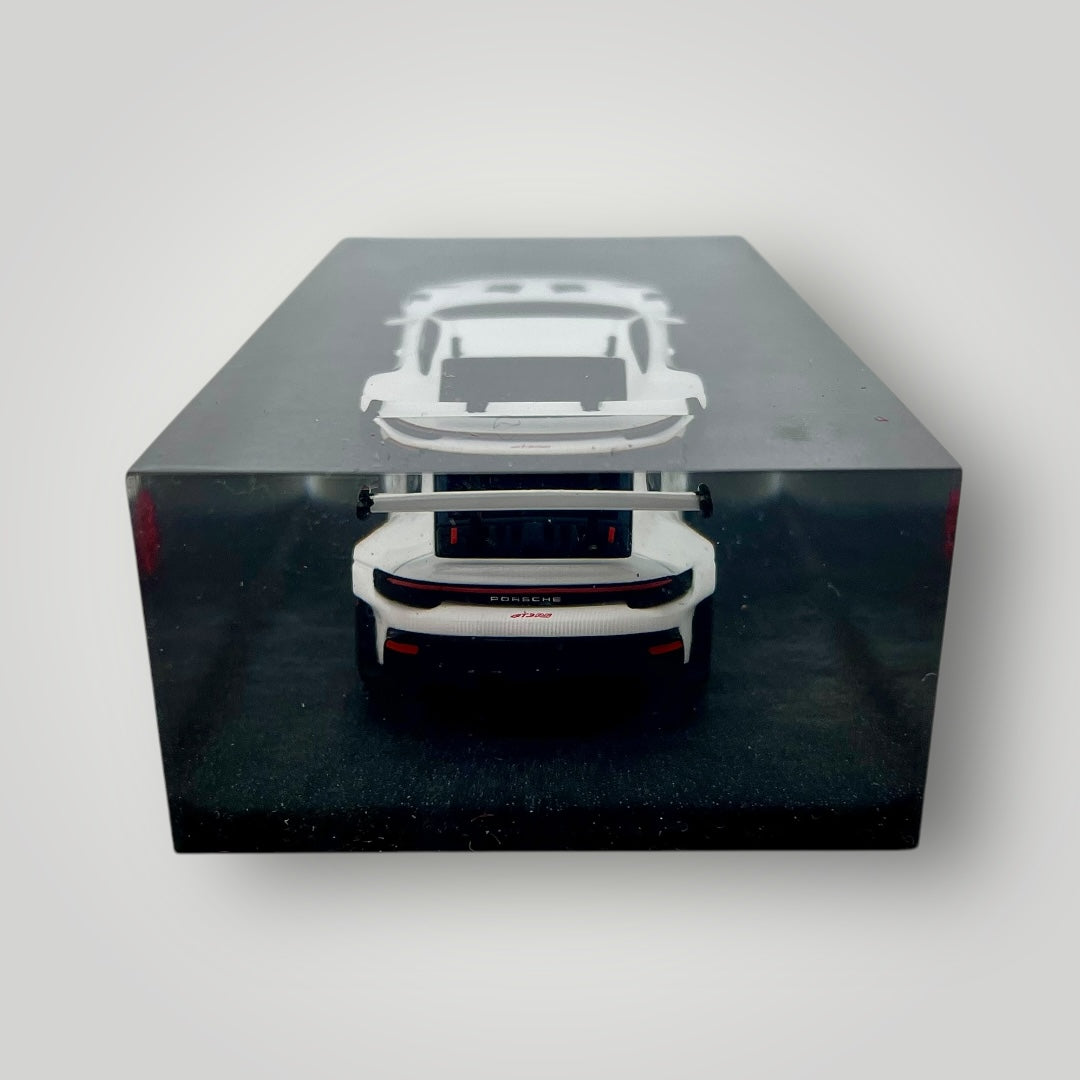In this exclusive creation from the Sealed Speed series by XRACE Speedlovers, the legendary Porsche 911 GT3 RS (992) is transformed into a timeless icon, sealed within a solid, transparent resin block with a clean and contemporary design. A tribute to the raw power, precision, and brutal elegance of Stuttgart’s ultimate driving machine.