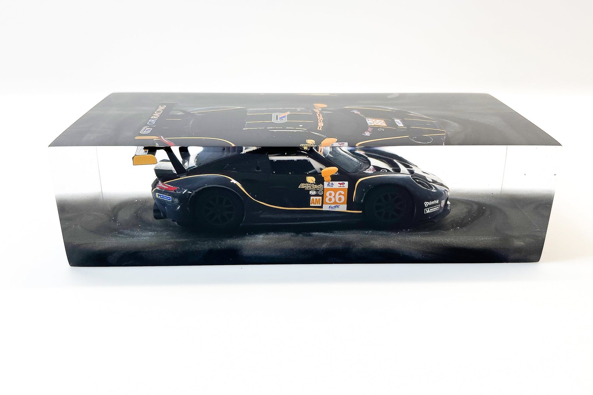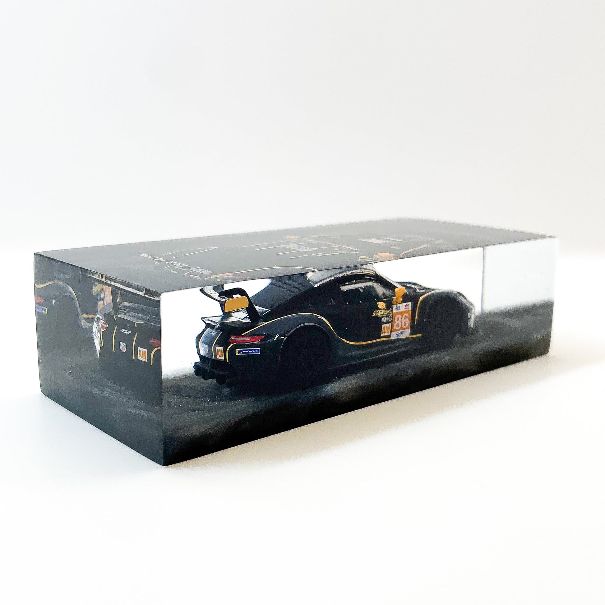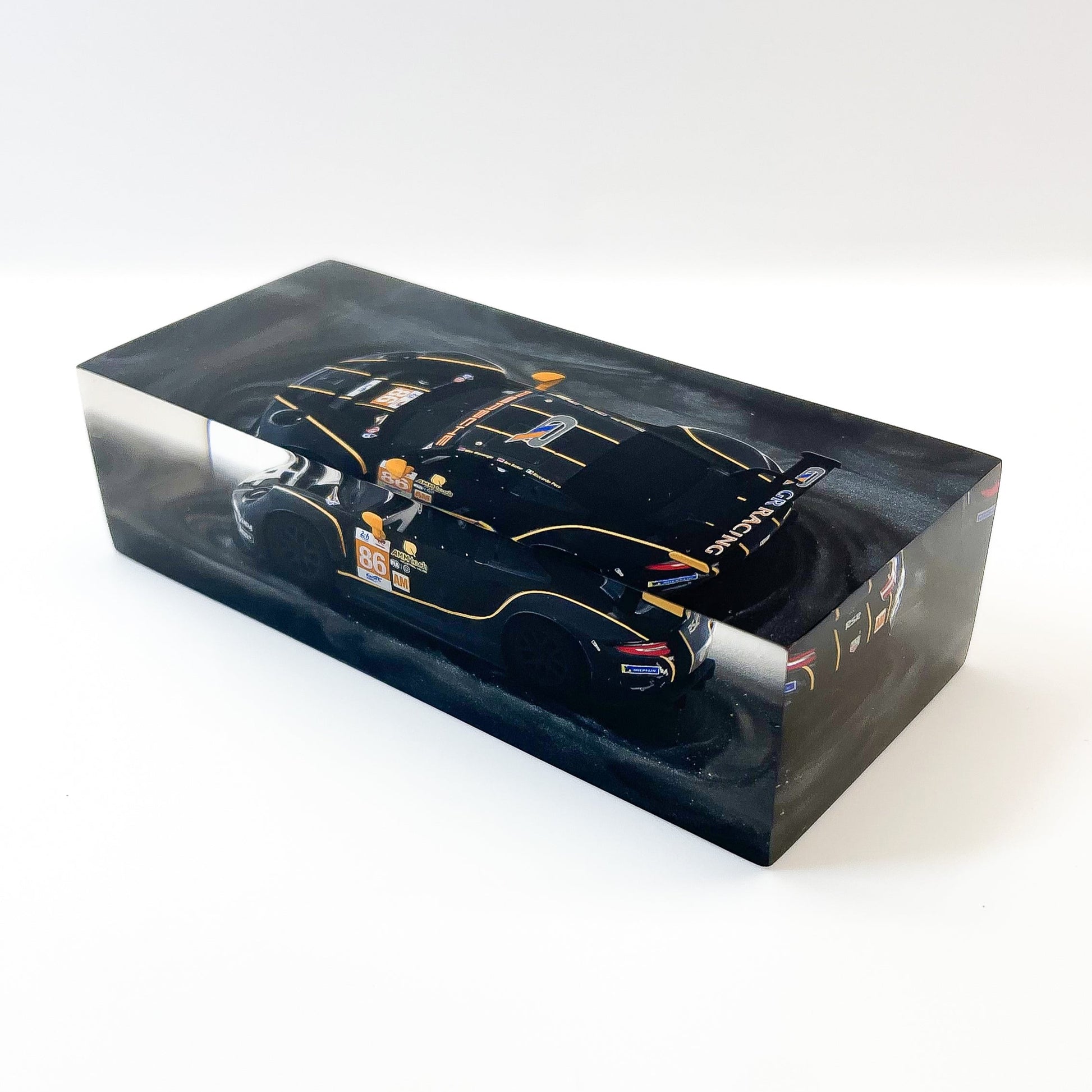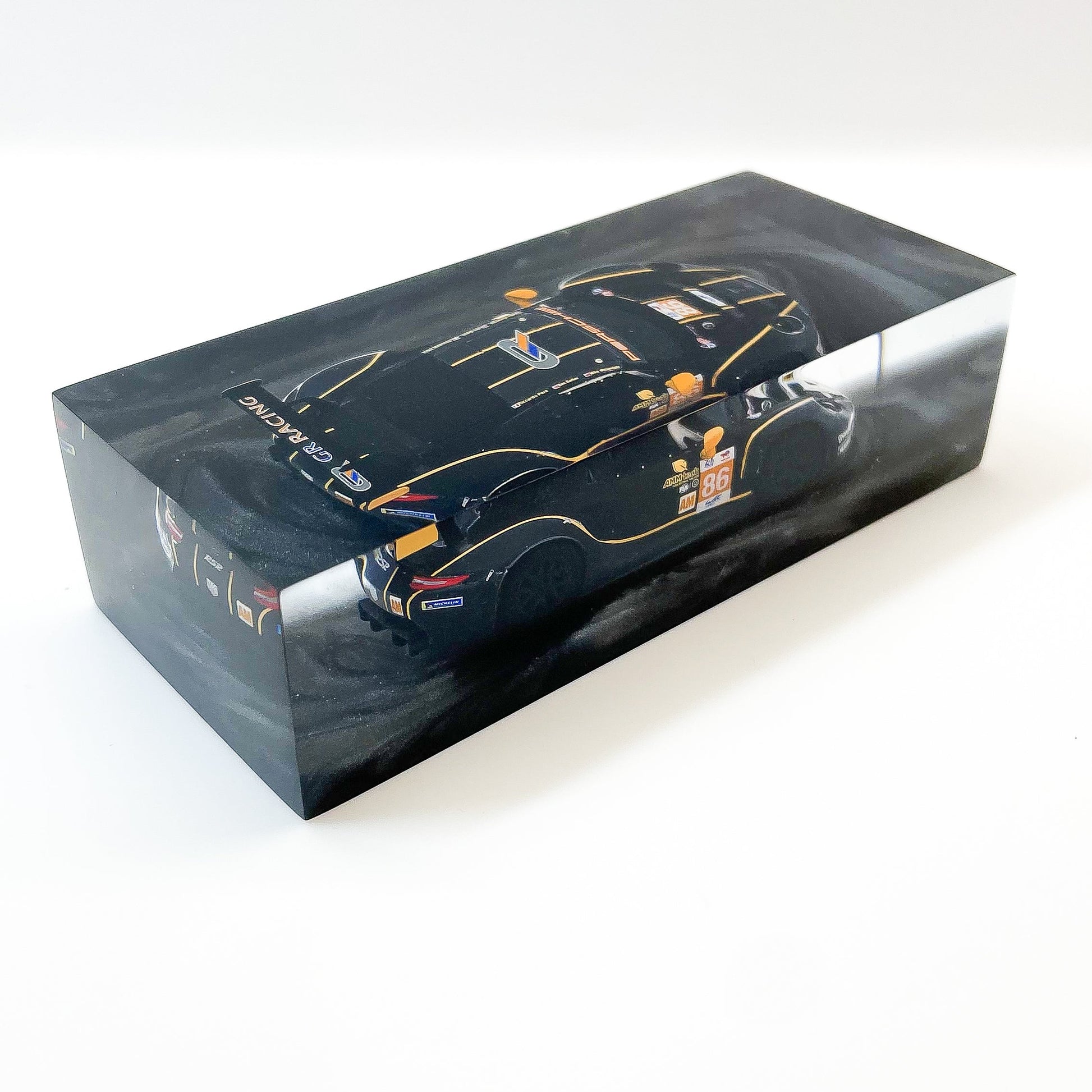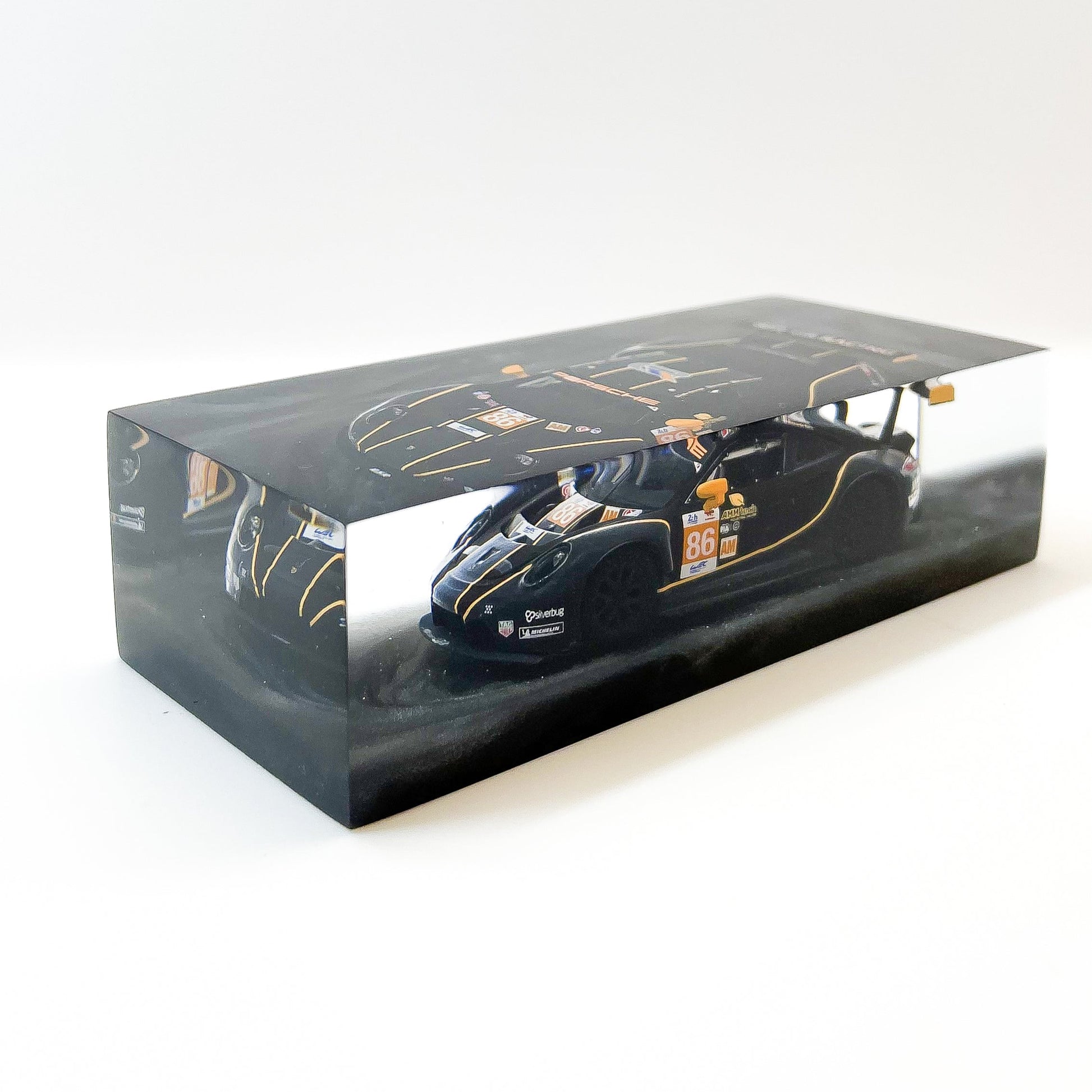 Sealed within a transparent block with a sharp, contemporary design, this sculpture celebrates resilience, strategy, and raw speed on one of the world’s most legendary circuits.