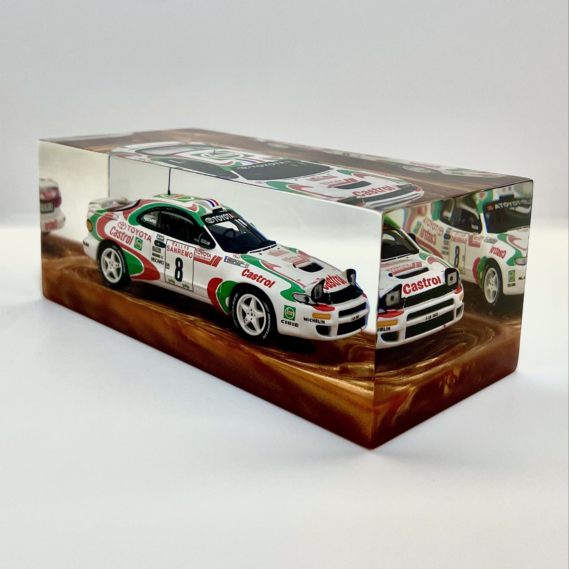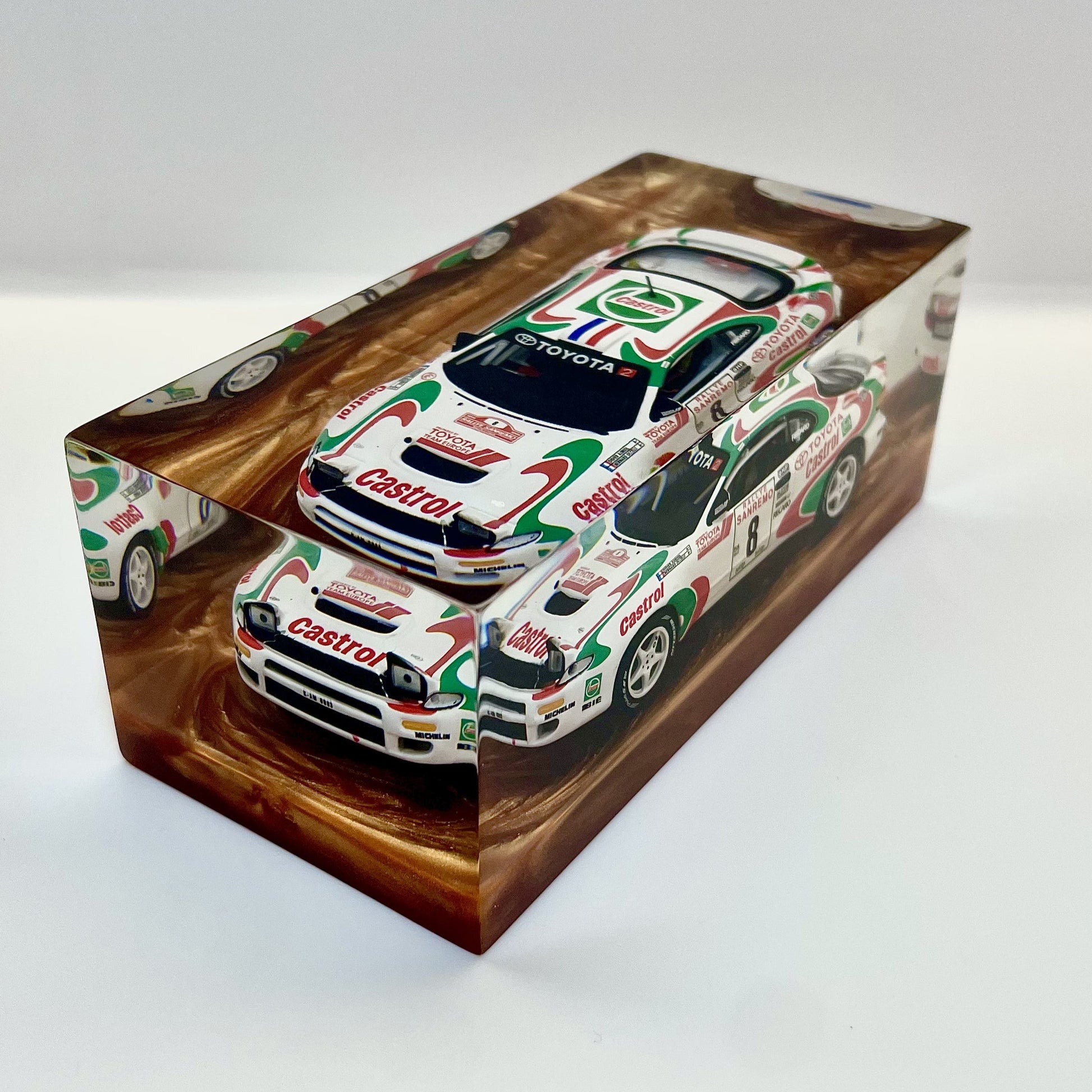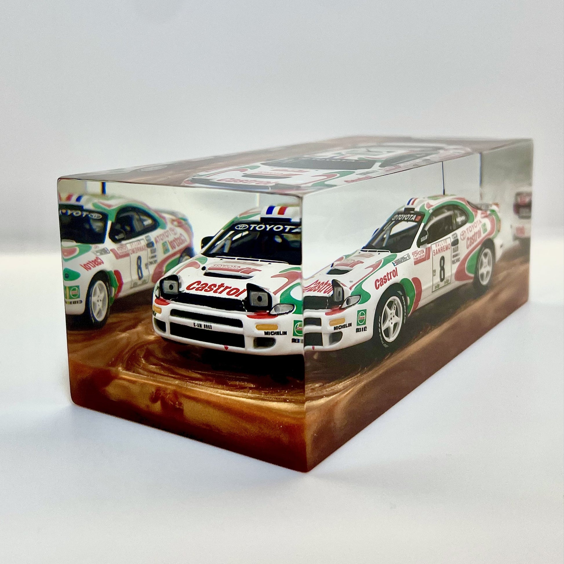 Sealed within a transparent block of clean, contemporary design, this sculpture pays tribute to a rally legend—built to conquer gravel, tarmac, and the most impossible corners.