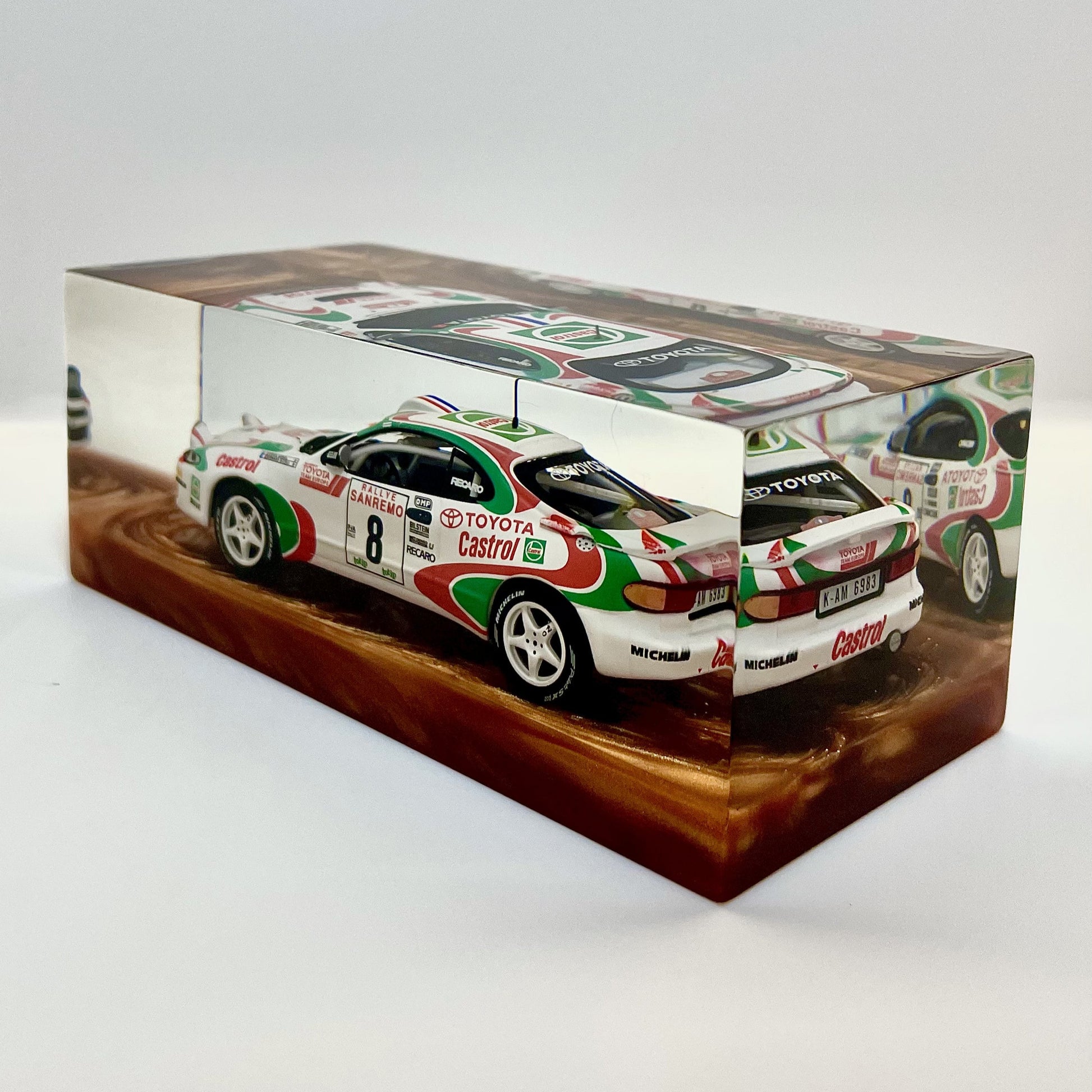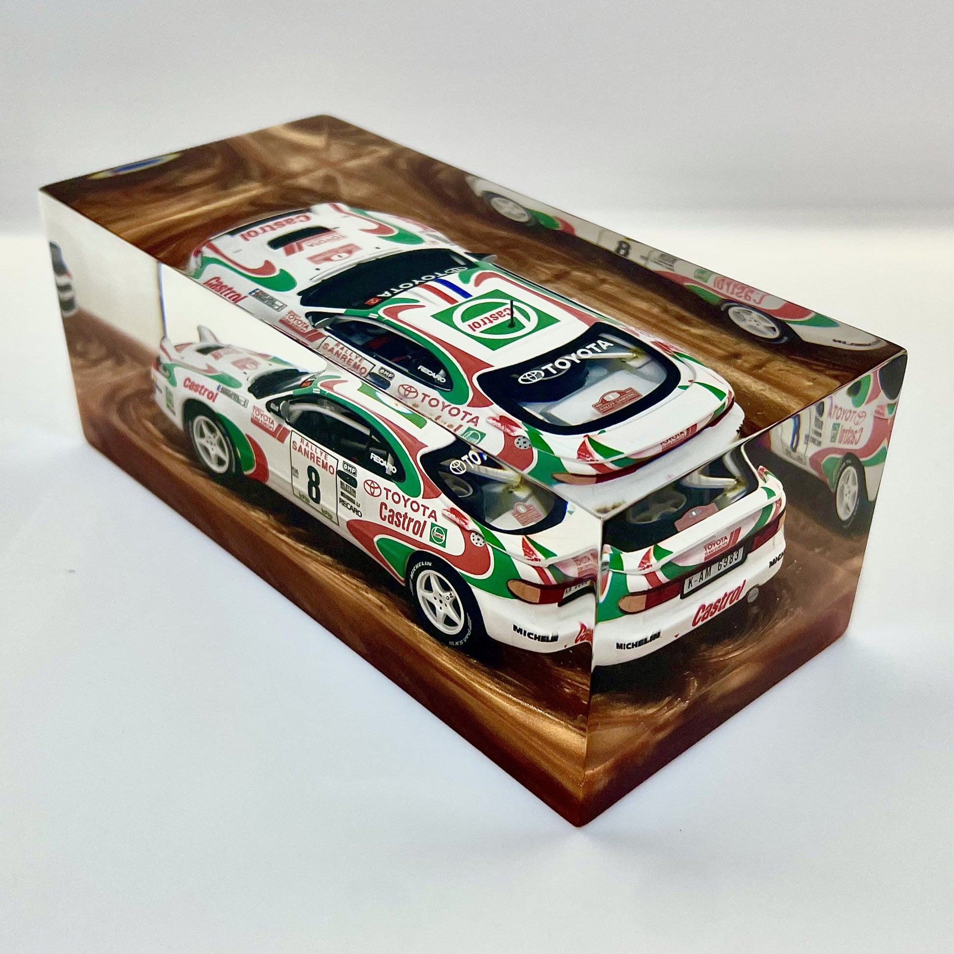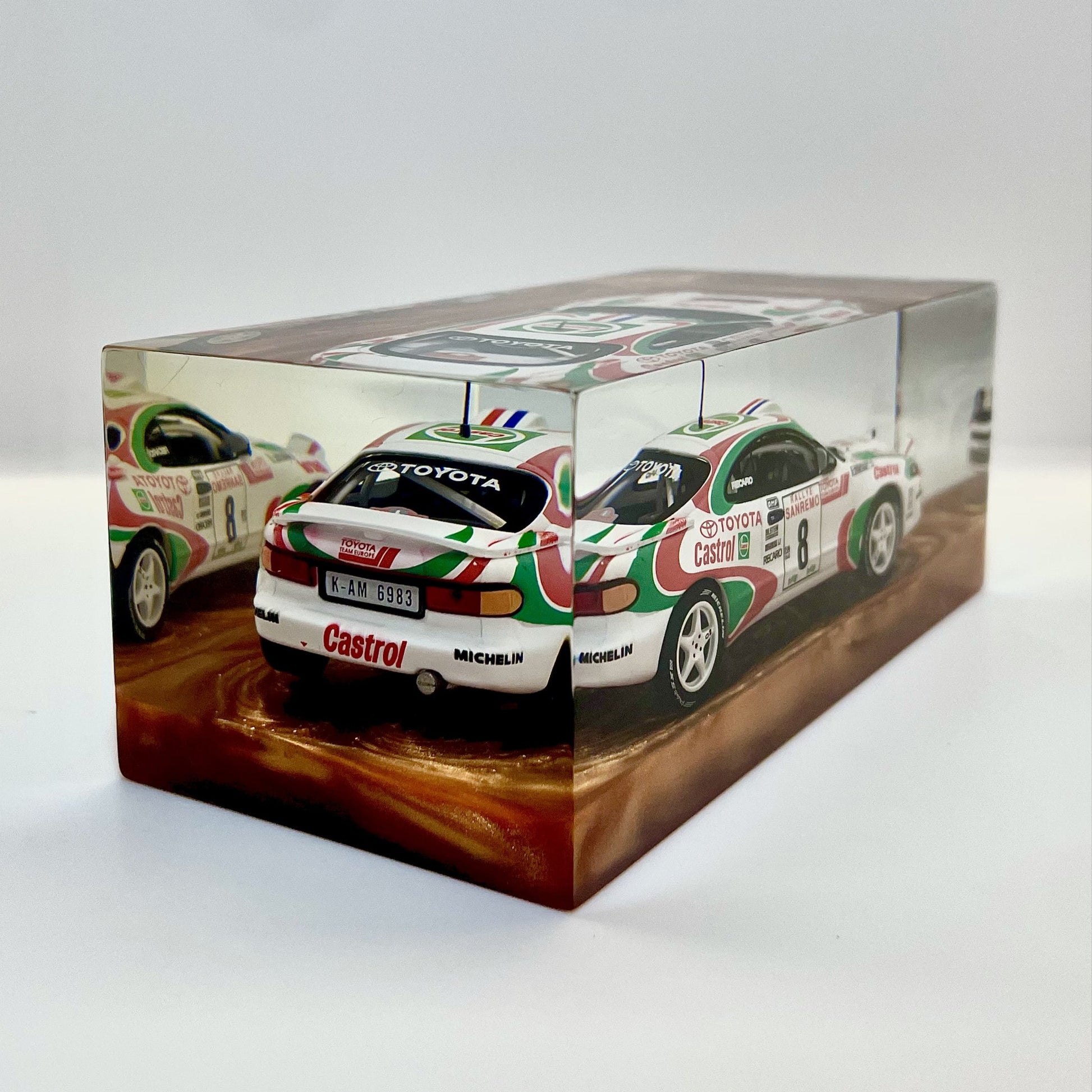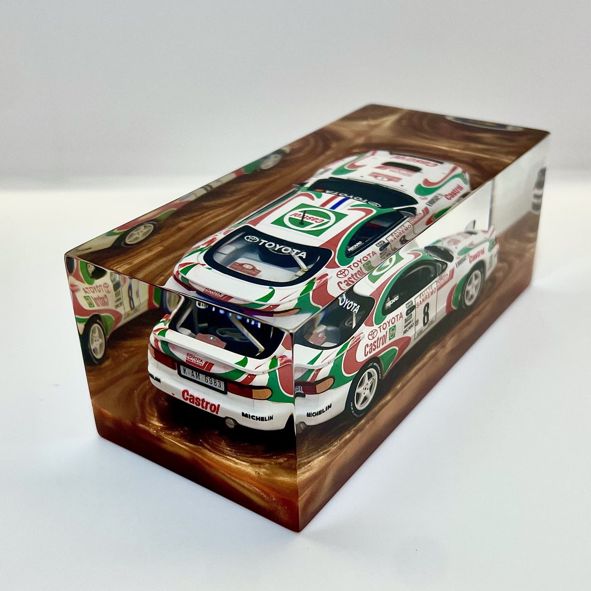Sealed within a transparent block of clean, contemporary design, this sculpture pays tribute to a rally legend—built to conquer gravel, tarmac, and the most impossible corners.